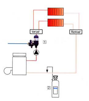 During flushing – without pressure loss – the circular brush is cleaned and the sludge flushed out. The quick-ventilation device automatically removes the air from the system. The HEIFi-Fül filling station is permanently connected to the drinking water system, and serves for the automatic filling and refilling of the heating system in accordance with DIN/EN 1717.