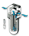 10 cm dolgi filtrski vložek je pravzaprav dvakrat daljši, ker je sestavljen iz dveh med seboj sestavljenih filtrov. Voda teče sočasno skozi zunanji in notranji filter. Oba toka se združita v osrednjem okroglem kanalu.